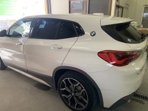 BMW X2リア5面に1番濃いタイプ3%を施工いたしました。プライバシーガラスではない為1番濃いフィルムでもそこまでの濃さはでないかなと思います。