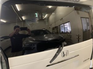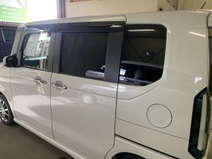NBOXリア5面に3番目の濃さ13%のフィルムを施工いたしました。一般的に適度な濃さになっていると思います。